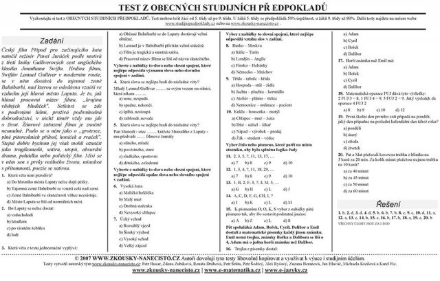 Zadání je v českém jazyce, krom deseti otázek, které máte zadány anglicky a i řešení je v anglickém jazyce. U každé otázky máte na výběr z pěti možností. Jste omezeni časem, dají vám sto minut na celý test.
